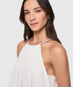 The Cassie Smocked Top is a sleeveless, cotton design with contrasted whipstitch detailing at the armholes, offering a relaxed and breathable fit. Beat the heat in style with this effortlessly comfortable piece, perfect for those warm, sunny days.