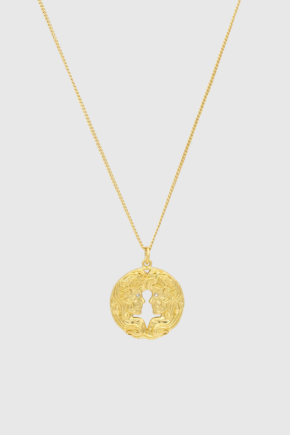 We made this necklace for all you Gemini’s out there. Crafted from highly polished gold, it features a twin pendant that’s set with dainty pavé crystals.
