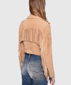 The Gemma Suede Jacket is a statement-making moto jacket crafted from soft, real suede, featuring bold fringe detailing at the front and back for a touch of Western-inspired flair.