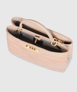 Chic and understated, the Amour Top Handle Satchel in nude is a wardrobe essential. The neutral quilted leather pairs beautifully with light gold hardware for an effortless, polished look. Spacious and practical with multiple pockets, it’s your go-to for everything from brunch to business meetings.