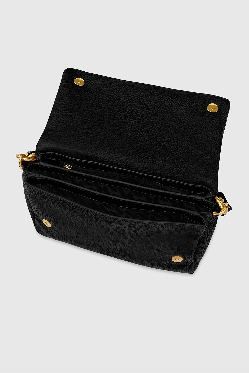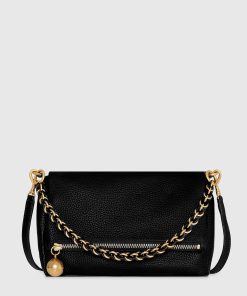 A classic gets a bold update. The Foldover Crossbody features a sleek foldover flap accented with a polished curb chain detail and a dangling studded zipper charm. Crafted from supple leather, it includes a top zip closure and adjustable crossbody strap for versatile wear.