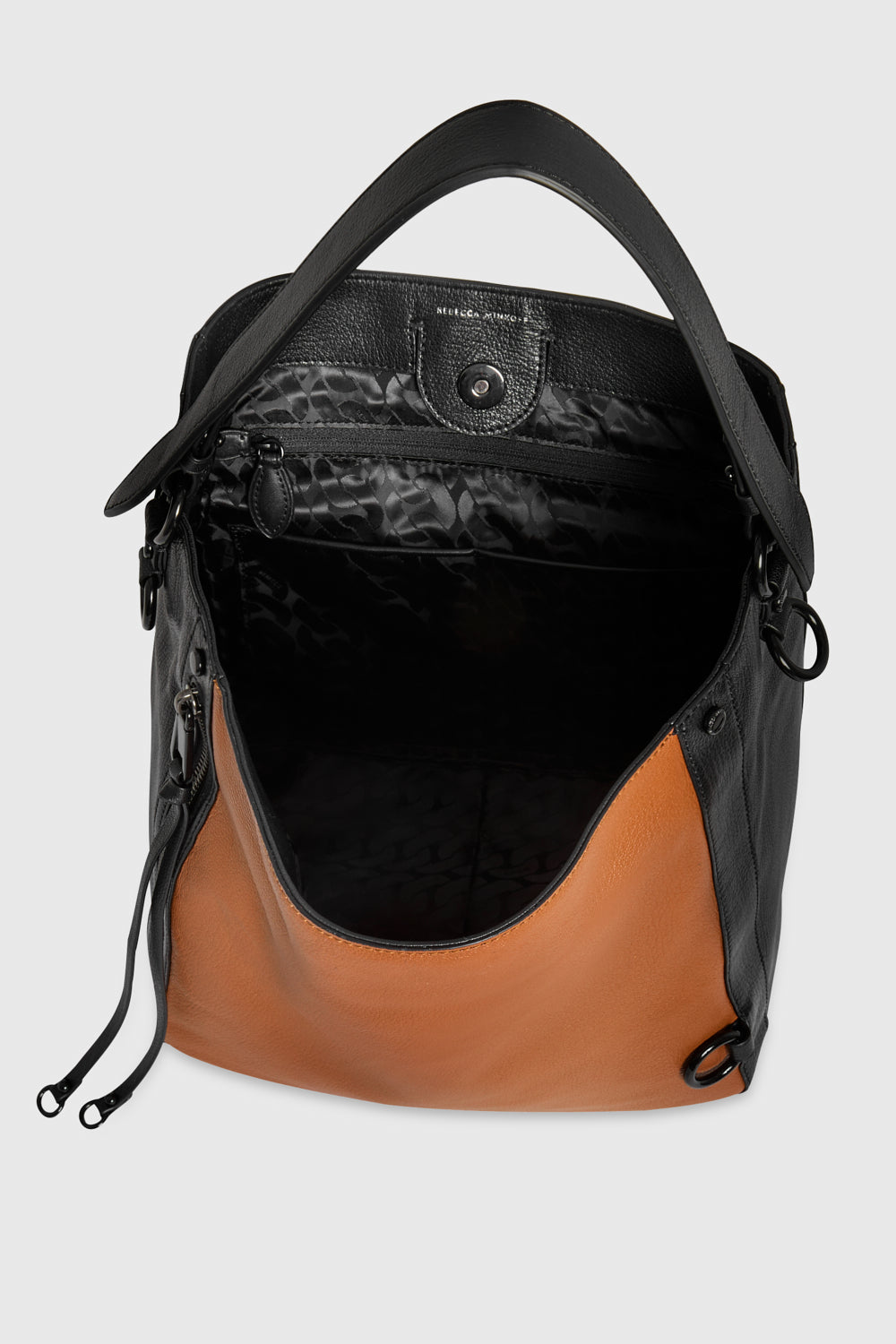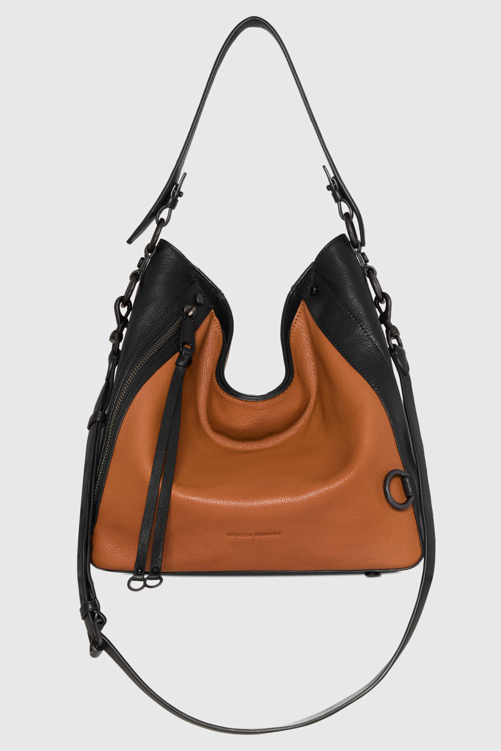 Crafted in supple suede leather and accented with black shellac hardware, the new M.A.B. Hobo Bag is spacious enough for your laptop and then some. Plus, the adjustable shoulder strap can be worn as a crossbody, so it will lighten the weight you’re carrying.