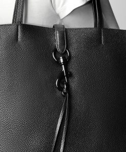 Roomy enough for even the busiest of days, Megan has a classic shopper tote silhouette that can fit your laptop, gym clothes, and much more. Made from soft pebbled leather in a black hue, it’s topped off with black shellac dog-clip hardware and features a discreet magnetic snap closure.