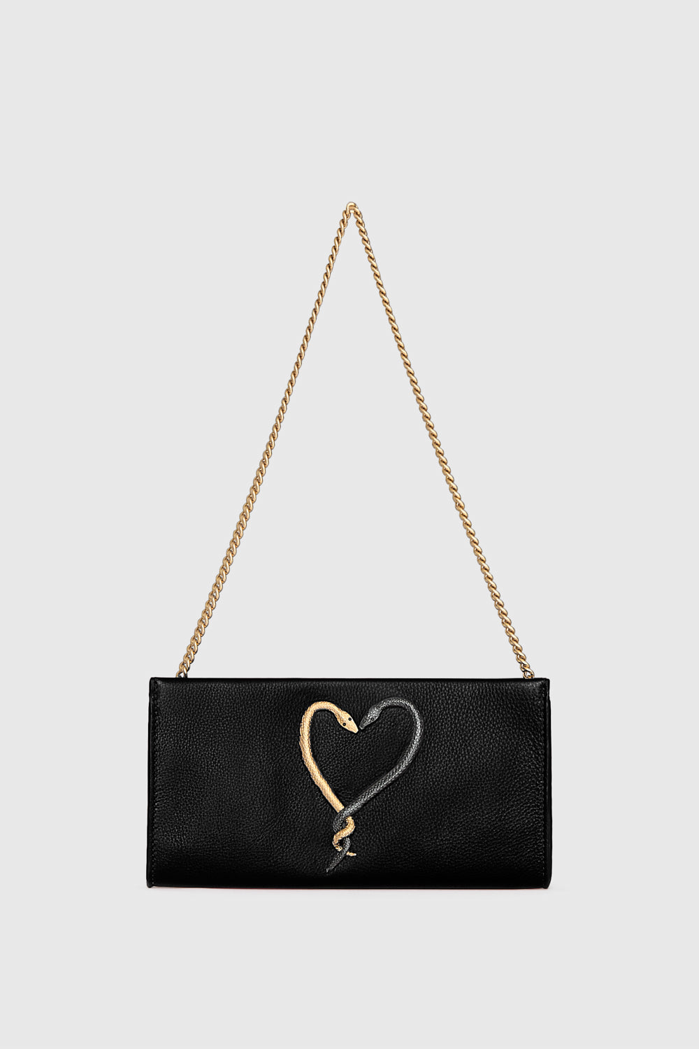 Crafted for a statement look, the Heart Snake Clutch features an intricate heart-shaped snake detail with antique brass and gunmetal accents, blending edge with elegance. Designed in genuine leather, this compact piece delivers timeless sophistication with a playful twist. Perfect for elevating evening wear or adding a bold touch to casual outings.