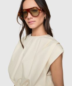 The Holly Sleeveless Poplin Top features pleated detailing and an elasticated tunneled bottom opening for a flattering fit. A keyhole with a button closure at the center back adds a touch of refinement to this effortlessly chic piece.
