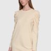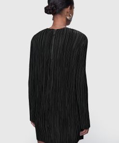 The Iris Pleated Long Sleeve Mini Dress exudes effortless style with its subtle sleeve openings, sharp pleats and laser-cut edges. The exposed metal zipper at the back, finished with the Rebecca Minkoff logo puller, adds a touch of downtown edge to this classic silhouette.