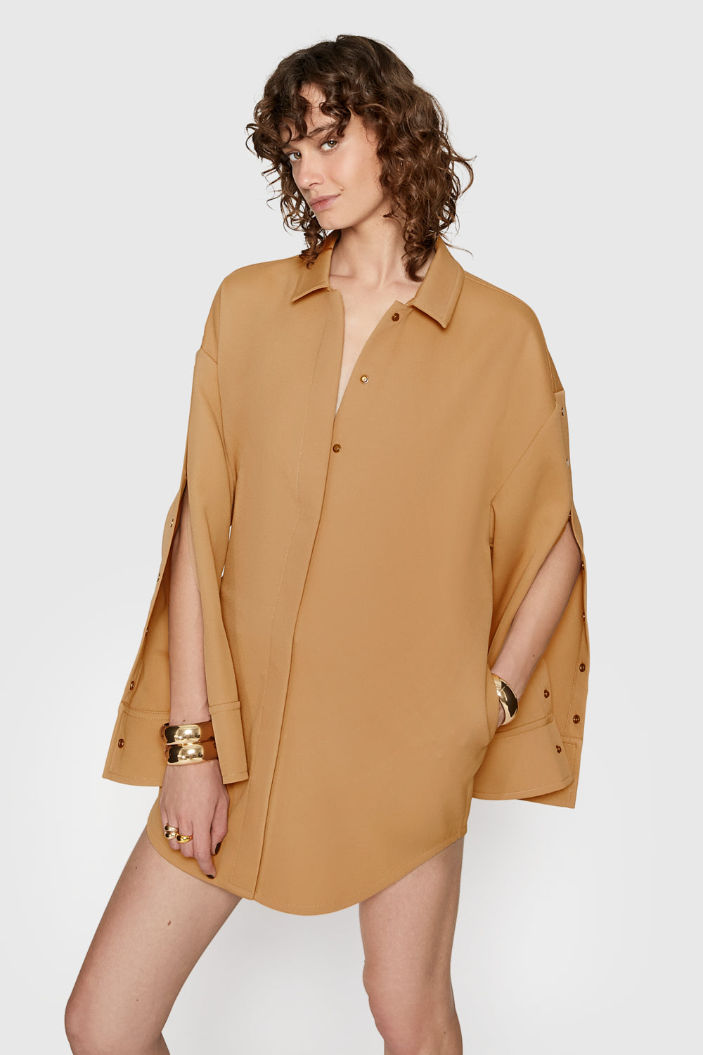 The Kennedy Shacket offers unparalleled versatility and style. A point collar and split sleeves add dimension to the relaxed design, while polished gold hardware adds an eye-catching touch.
