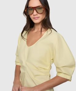 Rebecca Minkoff Women’s Naomi Pleated Short Sleeve Top | Straw