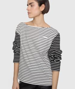 Rebecca Minkoff Women’s Ruby Stripe Pocket Tee | Ecru Stripe & True Black Stripe