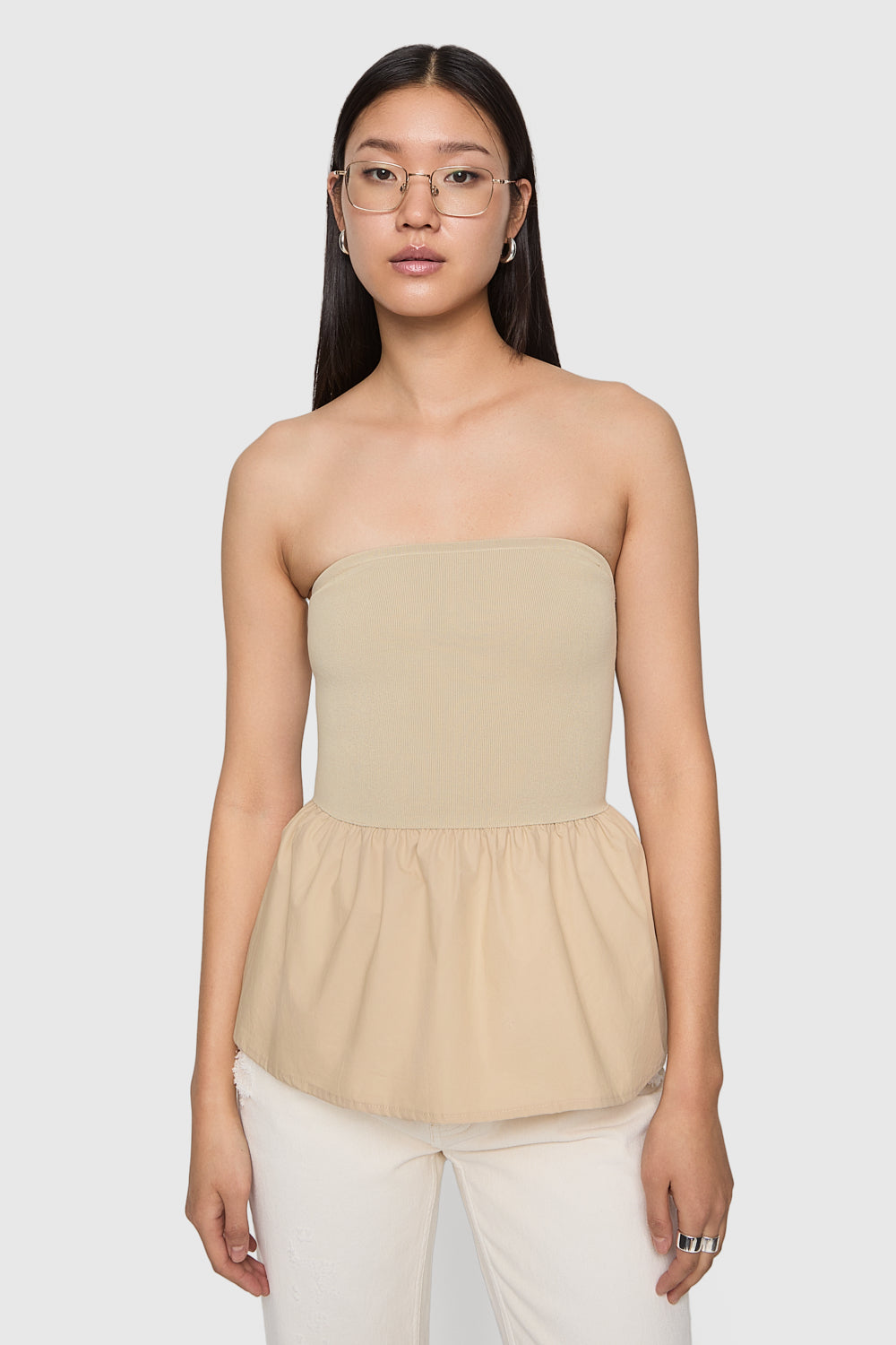The Ruthie Peplum Top offers a stylish blend of comfort and sophistication, with a fitted knit bodice that flows into a playful, gathered cotton poplin peplum. It’s a versatile piece that effortlessly balances chic structure with feminine flair.