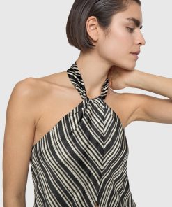Rebecca Minkoff Women’s Selah Halter Top | Black Textured Stripe