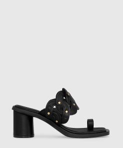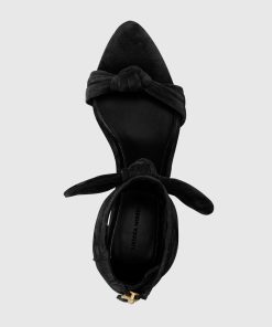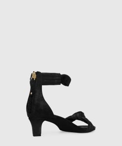 This sandal combines playful charm and everyday wearability. Designed with a soft ruched knot on the upper and a sleek kitten heel, this ankle strap style features a back zipper for easy on-and-off wear.