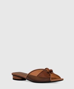 This sandal combines playful charm and everyday wearability. Designed with a soft ruched knot on the upper and a sleek kitten heel, this ankle strap style features a back zipper for easy on-and-off wear.