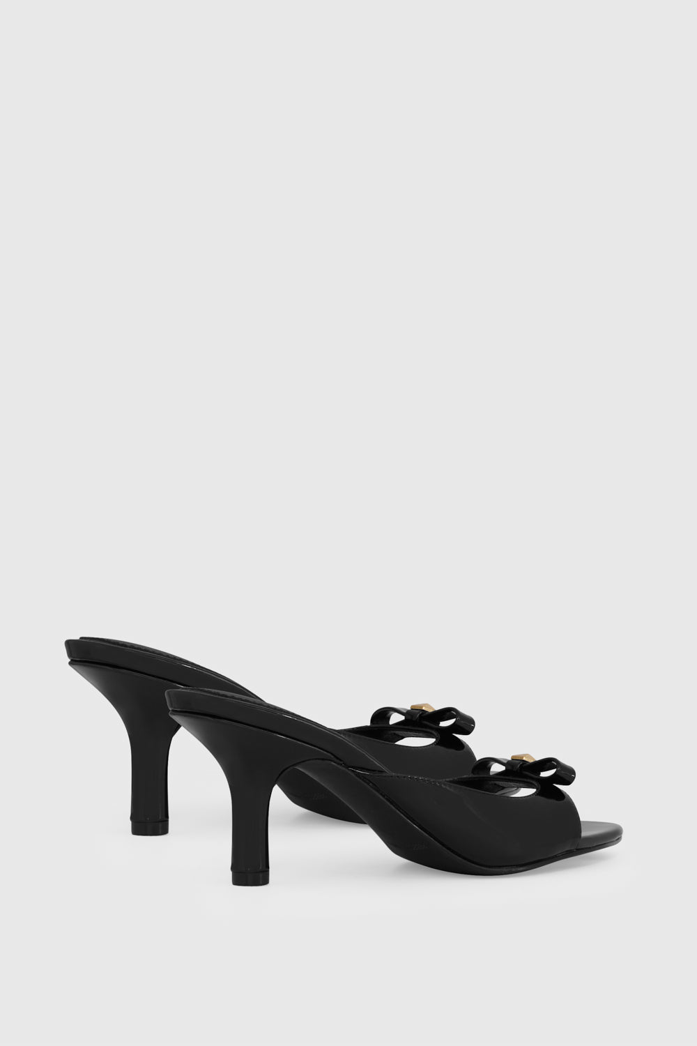 Add a touch of elegance to your wardrobe with this mule. Featuring a feminine bow with pyramid stud detailing on the upper, this pointed-toe slide offers effortless style. A padded insole and covered heel ensure both comfort and sophistication.
