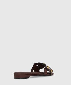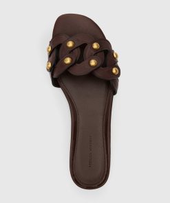 Step out in style with your new favorite sandal. This bold flat features a woven link upper with dome stud details and a soft square toe for a modern edge. A padded insole and flexible rubber sole offer all-day comfort and traction.