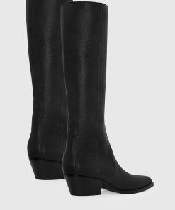 Classic Western, redefined. The Colt Tall Boot blends charm and sophistication for a look that’s both elevated and grounded. Crafted in rich black leather with subtle stitching and a stacked Cuban heel, this knee-high boot makes a statement without trying too hard. Whether paired with denim or a flowing skirt, the Colt is your ultimate power move in boot form.