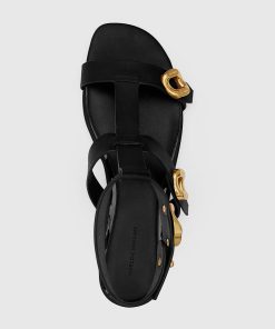 The G Gladiator Sandal features a minimalist flat design with bold curb link buckles for a modern touch. A padded insole and mini wedge heel ensure comfort for every step.