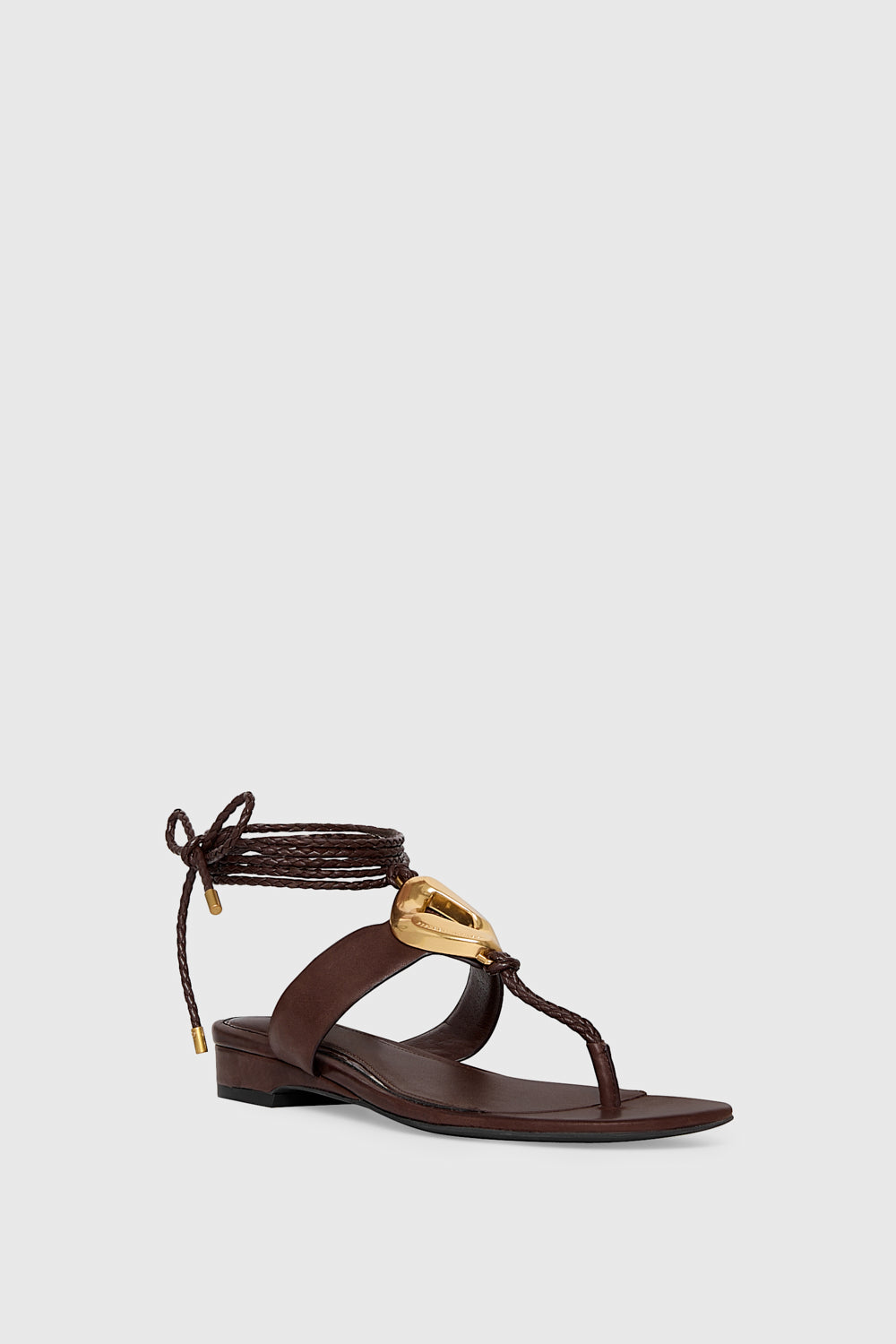 The G Wrap Sandal redefines Roman-inspired style with its braided leather upper and bold curb link buckle. A mini wedge and tie-up design add versatility, while the padded insole ensures comfort for all-day wear.