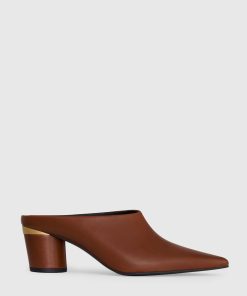 Modern elegance defined, the Tabitha Kitten Mule offers a hooded mid-heel design with a sleek pointy toe. The wrapped cylinder heel and subtle gold metal accent give it a refined finish, while the cushioned insole and rubber sole make it an all-day essential.