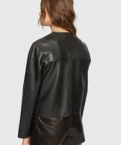 Made of soft, premium leather, our fave top layer for spring is both feminine and edgy with multiple exterior pockets and oversized buttons.